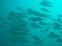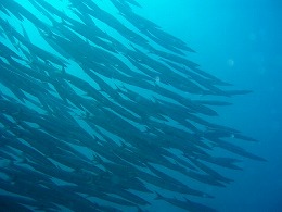 メキシカンバラクーダをはじめ、種々の魚の群れや