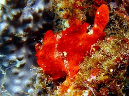 オレンジ色のイロカエルアンコウ