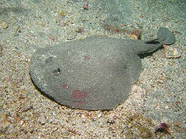 この時期砂地によく隠れているシビレエイ