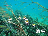 アオリイカの産卵床や砂地にある岩の上にはネンブツダイ等テンジクダイ科の体がまだ透明な幼魚たちが群れを作りとってもきれいな風景です。