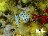 画像中)富戸ホールの壁にウスイロウミウシの幼体が多数います。シロウミウシに似てますが青い縁取りがあるのでちょっと違います