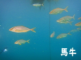 その周りではタカベの群れがワカシ(ブリの若魚)に追いかけられ右往左往していました。 |
