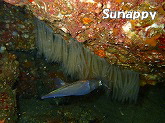 富戸の常連さんから情報をいただき行ってみるといましたよー 宇宙の生物の様な奇妙な魚(画像上中)・・体長は25cmほどでじっとしてました。