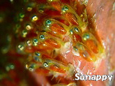 ヨコバマのイソギンチャク畑のクマノミの卵、今シーズン3回目の産卵から10日ほど経ちハッチアウト寸前です(画像左)