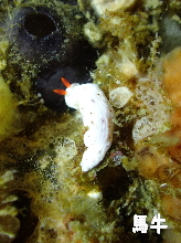 画像左)体長1cmにも満たないオトメウミウシ・・ウミウシの仲間がそろそろ目に 付くようになる季節です