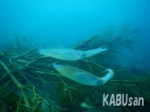 画像左)2本目のエキジット間際の超浅瀬にクサフグの大群が!